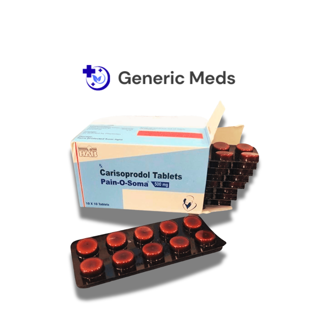 Pain O Soma 500 mg is a prescription medicine used to treat acute muscle pain and muscle spasms. It contains Carisoprodol, a centrally acting muscle relaxant that helps reduce pain and stiffness caused by muscle injuries, strains, or musculoskeletal conditions.